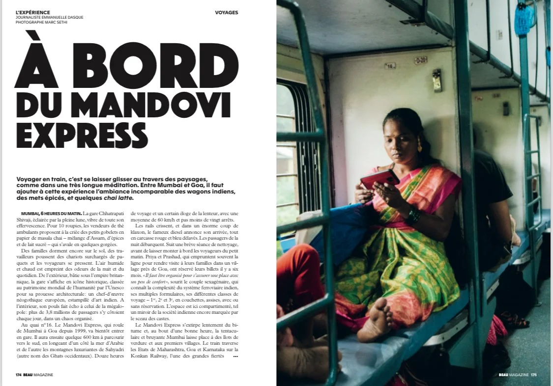 Reportage à bord du Mandovi Express pour BEAU MAGAZINE